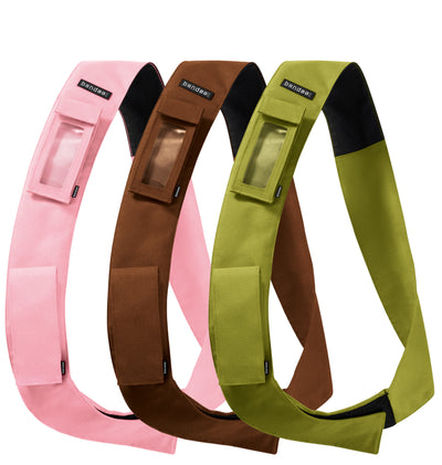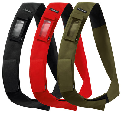 Nous proposons le sac à gadgets Bandee en deux tailles et plusieurs couleurs. La petite version, pour les tailles XS-M, est disponible en marron, rose et vert clair. La circonférence totale fermée est d'environ 100cm. La grande version pour M-XXL a une circonférence d'environ 130cm et est disponible en noir, rouge et vert foncé.