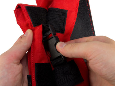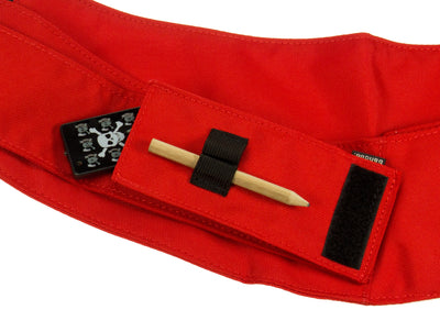 Particulièrement pratique : tu peux intervertir la position des deux poches extérieures ! Pour cela, il suffit de retirer la poche complète par la bande velcro. En dessous, elle est également fixée à la ceinture principale par un clip (voir photo), de sorte qu'elle ne peut en aucun cas tomber ou être arrachée.