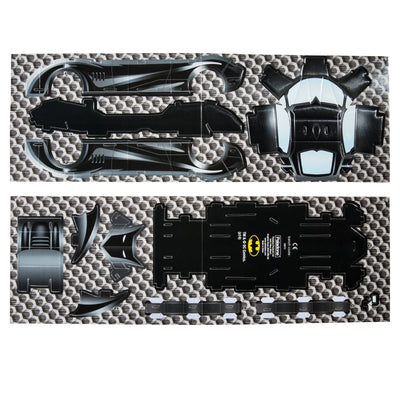 Dans cet ensemble, huit feuilles prédécoupées en carton épais et solide te sont envoyées. Avec un total de 33 pièces, tu peux assembler ta propre Batmobile sans avoir besoin de colle. Avant cela, les pièces doivent être délicatement extraites des feuilles avec un peu de doigté. Pour éviter que tu ne construises accidentellement quelque chose de complètement différent, une notice est incluse dans le kit pour te guider pas à pas dans l'assemblage. Ce n'est pas difficile, même les enfants plus âgés peuvent s'en sortir avec ce puzzle 3D.