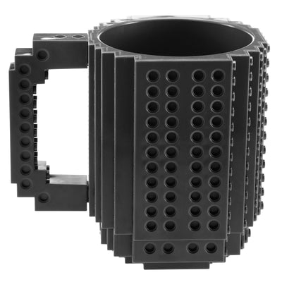 Cette tasse est cependant garantie étanche et peut tout de même être entièrement recouverte de blocs de construction ! Alors sors ta vieille collection et commence à transformer la tasse grise en ta tasse colorée et personnelle. Que dirais-tu de... roues ? Lampes ? Systèmes de défense pour collègues ? Un couvercle ? Un dispositif de massage sur la poignée ? Pour que l'imagination n'ait vraiment aucune limite, il y a des surfaces avec de grands picots, avec de petits picots et avec des tubes. Ainsi, les blocs les plus variés peuvent être fixés.