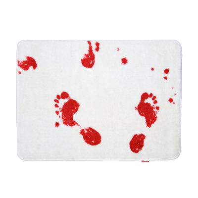 Le matériau moelleux de ce tapis de bain est imprimé avec des empreintes de pieds rouges, donnant l'impression que quelqu'un vient de marcher avec des pieds ensanglantés dans ta salle de bain. Il s'accorde parfaitement avec notre rideau de douche bain de sang, pour une atmosphère d'horreur parfaite.