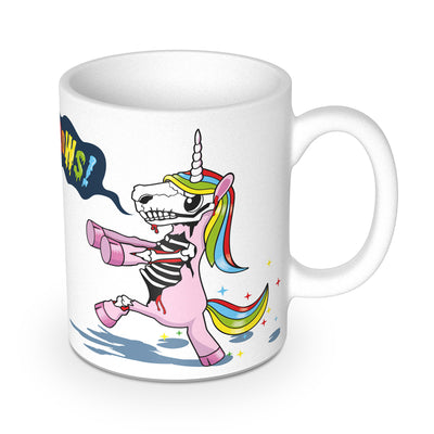 • Tasse en céramique imprimée tout autour avec anse ; - ; Montre ce que les licornes zombifiées désirent : des Brainbows !