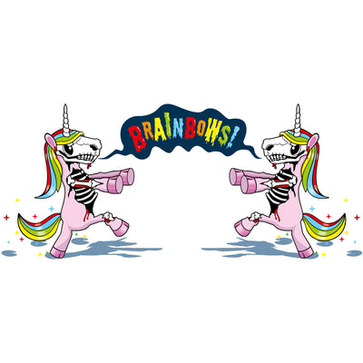 La tasse Zombiecorn de Brainbows montre la prochaine étape de la dégénérescence des créatures mythiques : elles errent dans les environs, se décomposent et gémissent pour ce qu'elles aiment le plus : les Brainbows. Nous ne savons pas exactement comment les Zombiecorns associent les cerveaux aux arcs-en-ciel, mais honnêtement, nous ne voulons même pas le savoir. Si tu entends le mot Brainbows en dehors de cette tasse, tu devrais prendre tes jambes à ton cou...