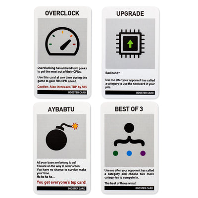 CPU Wars 2.0 apporte également une autre nouveauté avec les cartes Booster, qui ajoutent encore plus de dynamisme au jeu. Avec un peu de chance, tu peux ainsi rafler quelques cartes de tes adversaires... ou même perdre les tiennes. :)