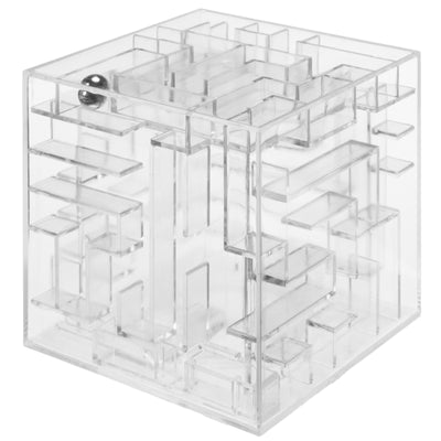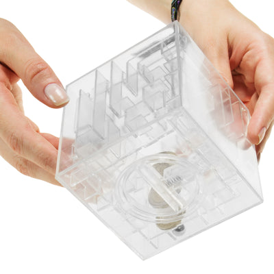 Pour ouvrir cette tirelire, tu dois diriger une bille à travers un labyrinthe compliqué. Tu ne peux déplacer la bille qu'en tournant et en inclinant tout le cube, ce qui nécessite non seulement de l'intelligence mais aussi une bonne dose d'habileté et de patience pour l'ouvrir. Une fois que tu as amené la bille à destination, tu peux ouvrir la tirelire une seule fois - ensuite, il faut à nouveau passer complètement par le labyrinthe.