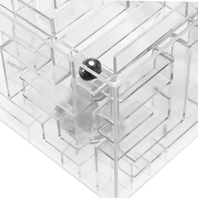 Le labyrinthe d'argent est fabriqué en plexiglas et a une longueur de bord d'environ 9 cm. Il dispose d'une fente d'insertion de 5 cm de long et de 0,4 cm de large ainsi que de 8x6x6 cm d'espace à l'intérieur.
