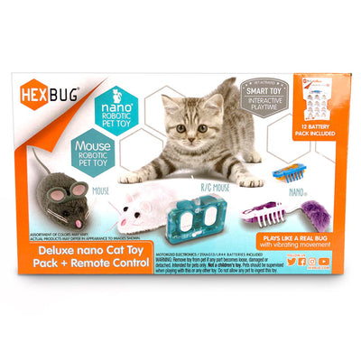 Contenu:- : 2 x jouets pour chats HEXBUG Nano, 1 x souris jouet HEXBUG, 1 x souris jouet avec télécommande, 12 x piles de rechange HEXBUG;- ; Alimentation:- : 8 x piles AG13/LR44 (incluses):