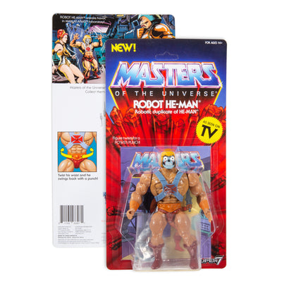 • Robot He-Man est volontiers utilisé par le vrai He-Man pour confondre Skeletor et le distraire. Mais avec son épée et son bouclier, He-Man le robot a l'air terriblement réel. Si seulement il ne perdait pas constamment son masque... ;)