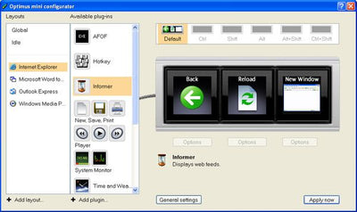 Avec le Optimus Configurator (qui ne fonctionne actuellement que sous Windows), vous pouvez configurer facilement les fonctions et les affichages, de sorte que, par exemple, un ensemble différent d'images soit affiché en fonction du programme ouvert. Des images personnelles (jpg, gif, png, bmp) et des images préinstallées peuvent être affichées à la fois horizontalement et verticalement.