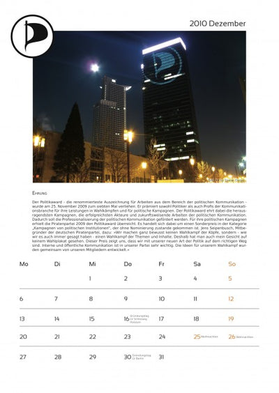 Calendrier DIN A3 avec 13 pages en couleur du concours du Calendrier des Pirates 2010.
