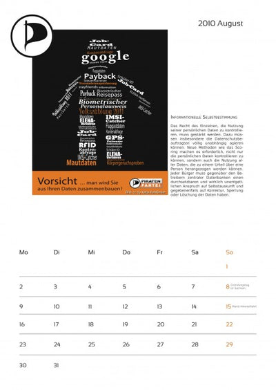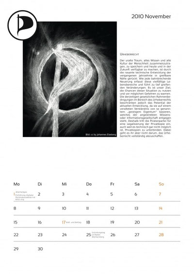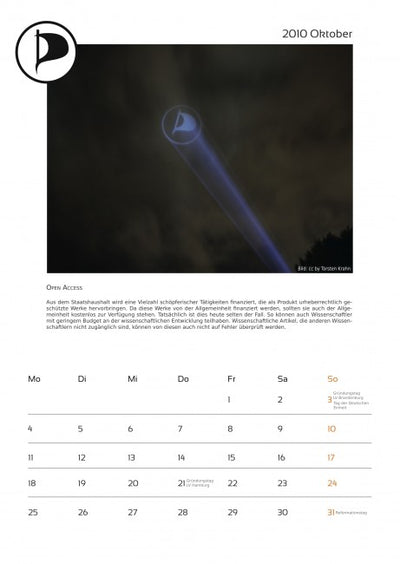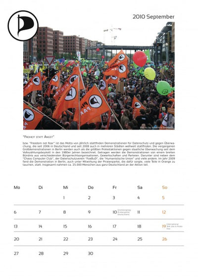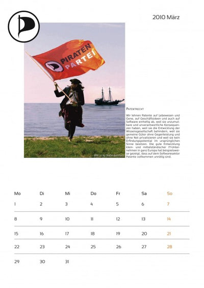 Chaque mois est accompagné d'une image de pirate et d'un texte sur des thèmes de pirates, et le calendrier contient déjà quelques dates de pirates. Une autre remarque : En octobre, l'indication de l'entreprise qui a fourni la machine de projection aux pirates avec une forte subvention a malheureusement été oubliée. Par conséquent, nous tenons à remercier une fois de plus Oliver Bienkowski de Lightartist.