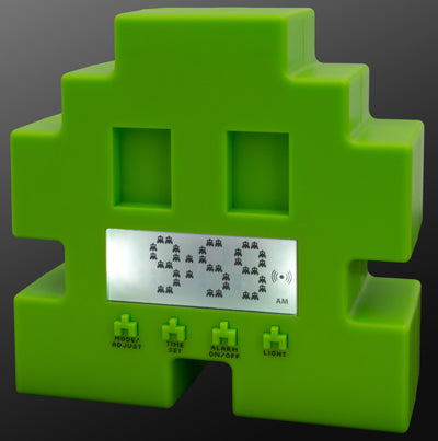 L'extraterrestre sur ta table de nuit n'est en fait que le Réveil Space Invaders, il ne te fait rien, tu n'as pas besoin de lui tirer dessus, mais avec son son arcade 8 bits fort et ses mouvements, il te réveille de ton sommeil.