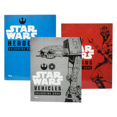• La boîte de livres de coloriage contient trois livres de coloriage montrant des scènes et des personnages célèbres des films Star Wars. Tu n'as besoin que de tes crayons de couleur. Et bien sûr, la Force de ton côté. ;)