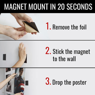 Tu te demandes sûrement Qu'est-ce qu'un poster en métal ? Et comment le fixer au mur ? Heureusement, il est facile et rapide de répondre à ces deux questions : un poster métallique est une impression artistique de haute qualité sur une plaque métallique. Tu peux donc t'imaginer le poster comme un poster papier, mais avec une meilleure qualité d'impression et sans les vilains plis et cornes d'âne ! Le montage est également très facile : il suffit de coller le panneau magnétique fourni sur le mur comme un autocollant et de fixer ton poster. Fini donc le temps où tu devais abîmer tes murs avec des clous, des punaises ou des trous de perçage.