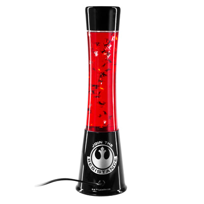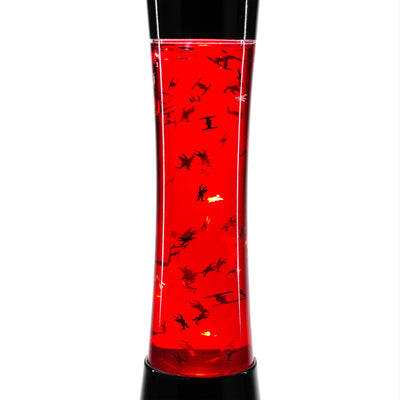 • Lampe rouge à paillettes avec des vaisseaux spatiaux en film bidimensionnel de Star Wars Episode VII;- ; Une fois allumée, la lampe plonge la pièce dans une lueur rouge et les vaisseaux spatiaux se déplacent dans le liquide.