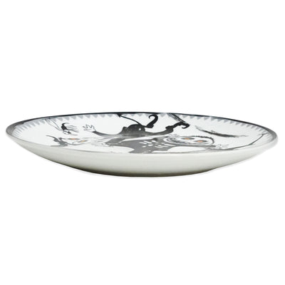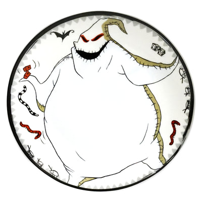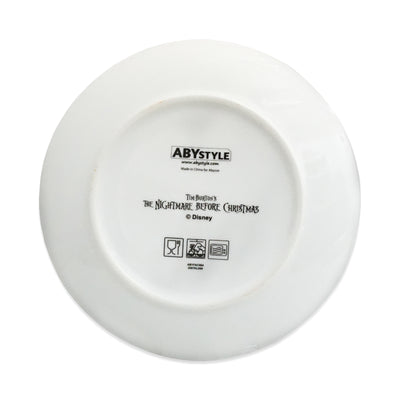 L'ensemble se compose de 4 assiettes avec de jolis dessins de personnages sélectionnés. Nightmare Before Christmas-des personnages, de Jack et Sally au méchant Oogie Boogie. Toutes les assiettes sont en porcelaine et ont des bords décorés en gris et noir.