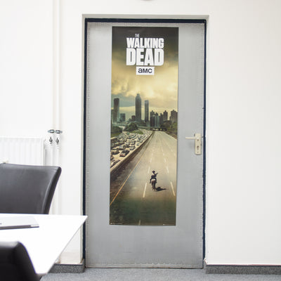 Le site "Poster de porte de The Walking Dead rappelle le début de la série à succès et montre Rick Grimes chevauchant un cheval le long d'une autoroute déserte. Comparé aux erreurs des saisons suivantes, les premiers épisodes étaient encore relativement détendus. :D