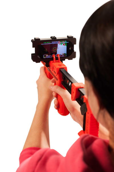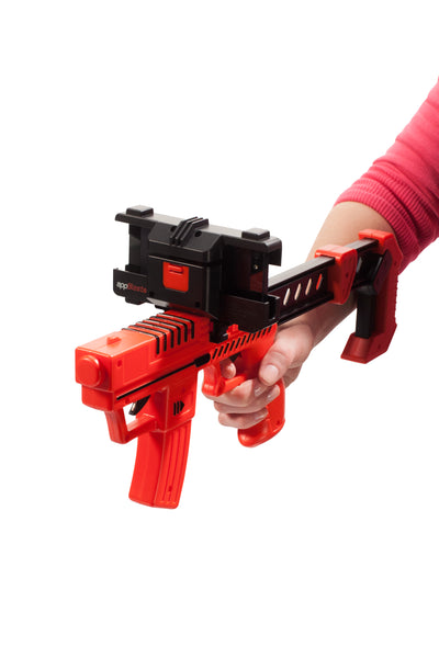 Nota: Nel video puoi vedere ancora la versione precedente di questa AppGun: l'unica differenza è il colore (prima bianco-arancio e ora rosso-nero) e il fatto che la versione attuale, a differenza della precedente, è compatibile anche con Android. Tutto il resto, compresi i giochi e l'esperienza di gioco, è rimasto invariato :)