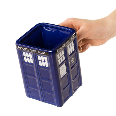 Ma torniamo al tè. Perché l'eccentrico viaggiatore del tempo lo beve solo dal tazza del TARDIS di Doctor Who. Questa tazza è insolita come il suo proprietario: è quadrata (!), sembra una macchina del tempo e contiene più di 500 ml! Il Dottore ci ha detto che è ancora più grande all'interno, proprio come il suo grande modello. Quindi prendi il tuo papillon, un fez e questa tazza per una dose extra di wibbly wobbly timey-whimey!