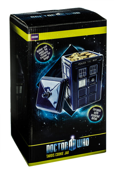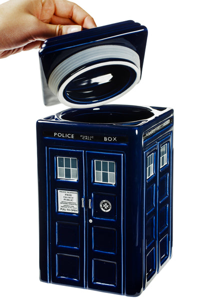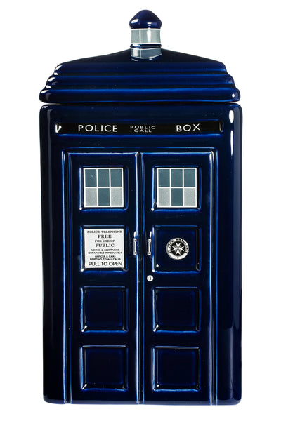 • Dettagliata biscottiera in ceramica con l'aspetto del TARDIS del Dottore, con licenza ufficiale.