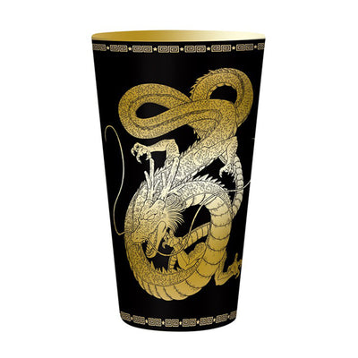 E in effetti lo è Bicchiere di Dragon Ball Shenlong è qualcosa di speciale: con la sua colorazione nera e oro, si distingue da tutti gli altri bicchieri della tua credenza. Presenta due motivi dettagliati di Shenlong e delle Sfere del Drago e ha una decorazione sul bordo.