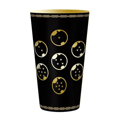 • Bicchiere nero e oro con due motivi dell'universo di Dragon Ball