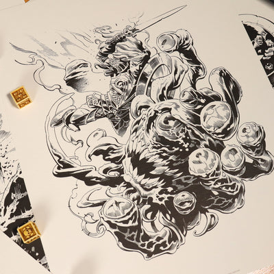 La prima edizione di Dungeons & Dragons è stata pubblicata nel 1974. Il gioco divenne il Il gioco è diventato il classico gioco di ruolo con carta e penna e oggi i nerd di tutto il mondo giocano alle campagne del colorato mondo di D&D online o di persona. Come un vero fan, ora puoi rigiocare la leggenda del gioco di ruolo fantasy con il gioco di D&D. Set di litografie di Dungeons & Dragons in edizione limitata onore.