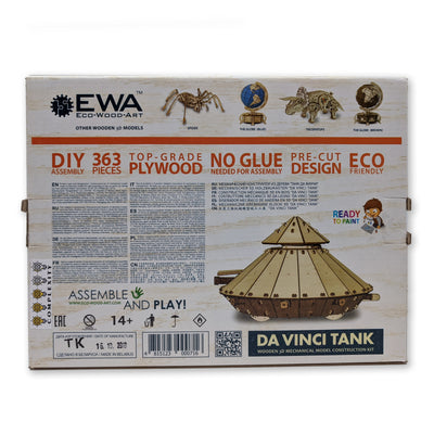 Uno dei più famosi delle invenzioni di da Vinci può essere vista con il Kit in legno Eco-Wood-Art per l'armatura di Leonardo da Vinci di Leonardo da Vinci! Questo set contiene parti in legno tagliate al laser che possono essere assemblate in un modello in miniatura della macchina da guerra rotonda. Il carro armato ha anche un azionamento a ventoche, come il resto del modello, è basato sui piani originali di Da Vinci.