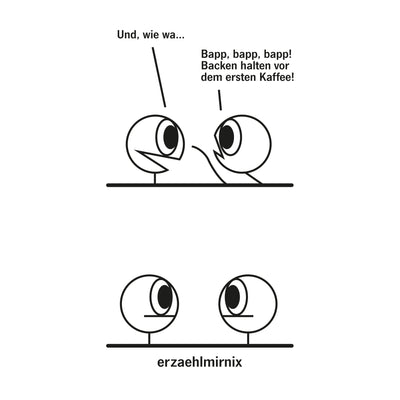 Qual è la prima regola della vita d'ufficio? Non iniziare a parlare finché l'altra persona non ha bevuto almeno un caffè. Qual è la seconda regola della vita d'ufficio? Non iniziare a parlare finché la persona con cui stai parlando non ha bevuto almeno un caffè. Come vedi, non è poi così difficile. Tuttavia, spesso siamo costretti a fare esattamente quello che c'è scritto sul foglio. tazza di erzaehlmirnix "Bapp Bapp Bapp". tazza: semplicemente forte Bapp Bapp Bapp e ricorda a tutto il vicinato che le regole citate all'inizio devono essere rispettate ;)