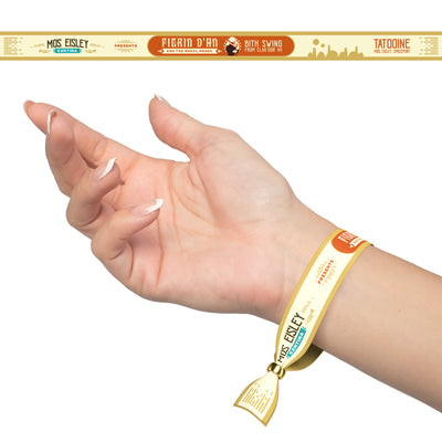 Mit dem Festivalbändchen "Cantina Band" kannst Du Deinen Freunden zeigen, dass Du einen der seltenen Auftritte der Cantina Band live erlebt hast. Es muss ja keiner wissen, dass sie immer nur einen Song in Endlosschleife gespielt haben... Das Festivalbändchen aus Stoff lässt sich durch einen Metallring in der Größe verstellen und passt somit sowohl Ewoks als auch Wookiees. :)
