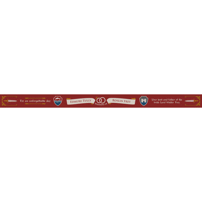 Il nastro del festival delle "Nozze Rosse ti invita a una nuova edizione del miglior matrimonio della storia recente della TV. Se preferisci restare a casa, puoi comunque affermare di essere stato presente grazie al nastro in tessuto regolabile. Basta inventare qualche bella storia su quanto eri ubriaco e tutti crederanno subito che eri presente!