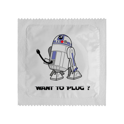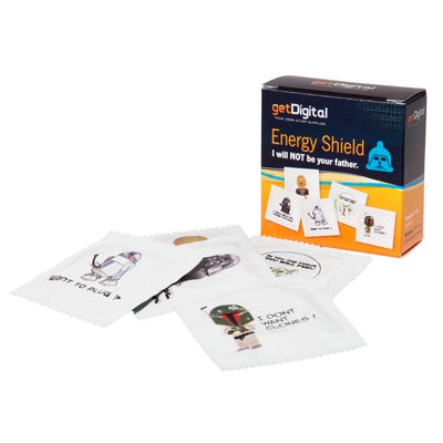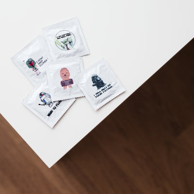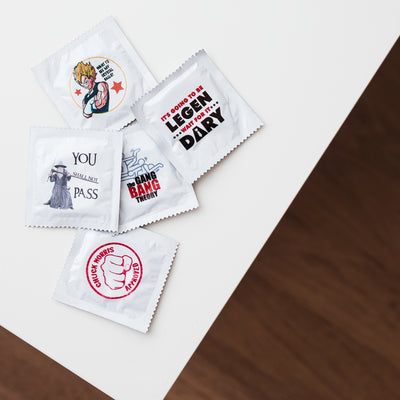 • Due set di preservativi con stampa geek sulle maniche