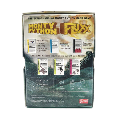 Il Gioco di carte Fluxx - Edizione Monty Python (EN) combina questo stravagante principio con i personaggi, gli oggetti e le situazioni altrettanto esilaranti dei film e degli sketch del gruppo comico per eccellenza Monty Python. Preparati quindi al Karrrrrnickel, alla Sacra Granata e a tutto il resto.