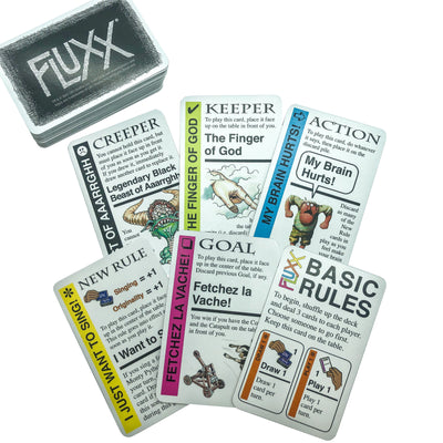 Un gioco come Fluxx non è così facile da spiegare in modo breve e conciso, anche se c'è una sola regola fissa in questo folle gioco di carte: Si pesca una carta per turno e si deve giocare una carta. Il resto del gioco è puro caos! Perché a ogni turno vengono aggiunte nuove regole, nuove condizioni di vittoria e altre cose folli!