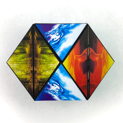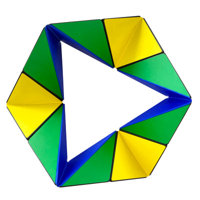 Se sei arrivato a questo punto della tua carriera di rompicapo, il Gioco di abilità GeoBender può fornire un rimedio: a differenza di un classico rompicapo, qui non esiste uno stato "risolto", ma si può passare quasi senza soluzione di continuità tra oltre 70 forme diverse avanti e indietro! Grazie ai 36 magneti presenti all'interno, le 12 piramidi che compongono un GeoBender si tengono saldamente insieme, ma possono essere facilmente rimodellate. In teoria, è possibile combinare un numero infinito di GeoBender per creare affascinanti opere d'arte o il sogno del puzzle definitivo!