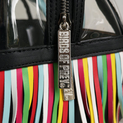 La licenza ufficiale Harley Quinn Birds of Prey è in perfetta sintonia con lo stile selvaggio di Harley Quinn: la parte superiore della borsa è trasparente e reca una stampa della firma di Harley, mentre la parte inferiore è ispirata alla sua selvaggia giacca con frange. La borsa è dotata di due manici rosa acceso nella parte superiore, ma se hai bisogno di avere le mani libere in un combattimento ravvicinato, puoi anche appenderla casualmente sulla spalla, grazie a una cinghia staccabile che sembra un nastro barriera.
