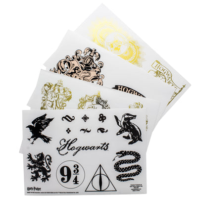 In quattro fogli troverai un totale di 27 adesivi per gadget impermeabili e rimovibili che potranno decorare il tuo smartphone, tablet o laptop in un modo che rasenta la magia. Oltre allo stemma di Hogwarts e agli animali araldici delle quattro case, troverai altri motivi tratti dalla fortunata serie di libri e film, tra cui il segno della Piattaforma 9 ¾ e il segno dei Doni della Morte. Gli stemmi dorati, in particolare, faranno risplendere i tuoi dispositivi di un nuovo splendore e ti faranno sorridere più di quanto possa fare una deliziosa burrobirra. E chissà, forse prima o poi arriverà la tua lettera da Hogwarts...