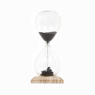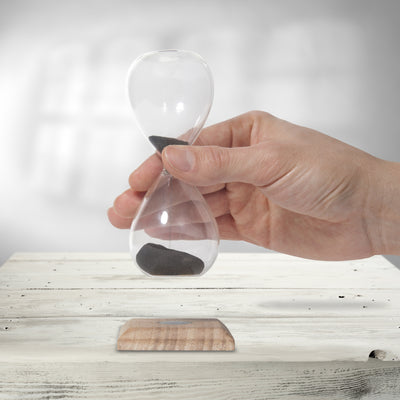 La nostra Clessidra Magnetica rientra in quest'ultima categoria, aggiungendo nuove e affascinanti funzionalità a questa tecnologia senza tempo (badum-tss...) grazie all'utilizzo di limatura di ferro e di un magnete nella base dell'orologio. È sufficiente prendere la fiaschetta di vetro in aria, girarla e posizionarla sul magnete nella base di legno. La fine limatura di ferro cade attraverso l'apertura per un minuto e forma affascinanti disegni sulla base della clessidra. Non appena rimuovi il corpo di vetro dalla base, la limatura perde nuovamente la sua carica magnetica. Le applicazioni possibili sono pressoché infinite: puoi misurare quanto tempo impiega il tuo computer ad aprire il browser, puoi tenere traccia del momento perfetto per preparare il tè, ecc.