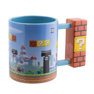 La tazza 3D con il suo design dettagliato di Super Mario mostra i personaggi Mario e Luigi nel loro ambiente naturale: saltano tra goomba, monete, fiori di fuoco e molti altri elementi dei famosissimi giochi di piattaforme. La tazza ha una capacità di circa 500 ml, quindi c'è spazio a sufficienza per il tuo caffè, tè o cioccolata.
