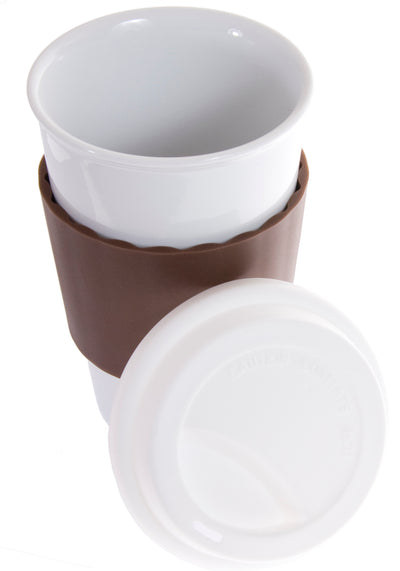 La tazza ecologica, invece, è rispettosa dell'ambiente. Ha tutte le caratteristiche di un normale bicchiere di carta utilizzato nelle catene di caffè, ma è riciclabile! È infatti realizzata in porcellana di alta qualità, con uno spessore di 4 mm. Il tipico coperchio della tazza ecologica è realizzato in silicone anziché in plastica, ma presenta anche un'apertura per bere e un foro per l'aria. Per evitare di scottarsi le dita, anche la custodia di cartone è stata sostituita da una custodia in silicone.