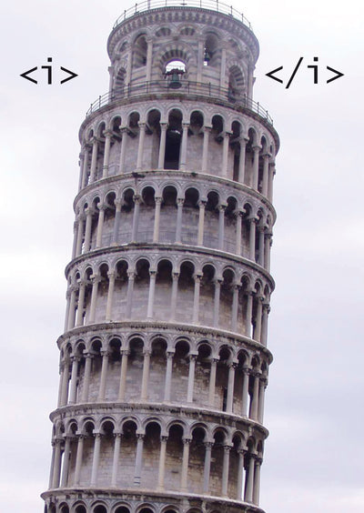 - La Torre di Pisa: e segnano l'inizio e la fine del corsivo nel codice html.