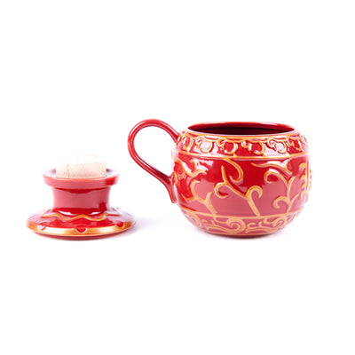 Le tazze in offerta sono rimanenze fortemente ridotte e leggermente danneggiate: Tra le altre cose, la vernice potrebbe essere applicata in modo non uniforme in alcuni punti o il coperchio di legno potrebbe essersi allentato (ma questo può essere facilmente risolto con un po' di supercolla).