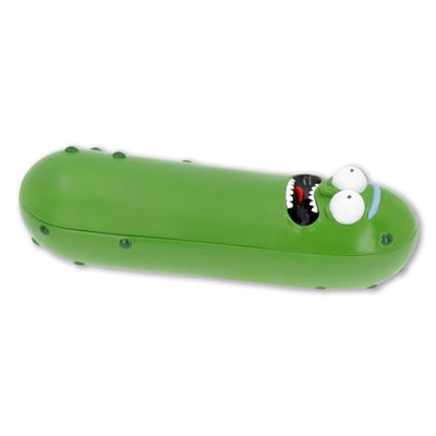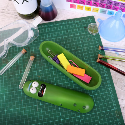 Con il Contenitore "Pickle Rick" per Rick e Morty puoi trasformare il tuo portamatite in un cetriolo! Per essere più precisi: in una versione in resina di Pickle Rick! Sotto il coperchio di questa replica dettagliata e dipinta a mano del cetriolo più pericoloso della galassia, c'è spazio per penne, graffette e altri oggetti per tenere in ordine la tua scrivania. Puoi tranquillamente ignorare le chiacchiere di Rick. Cosa potrebbe mai farti un cetriolo?