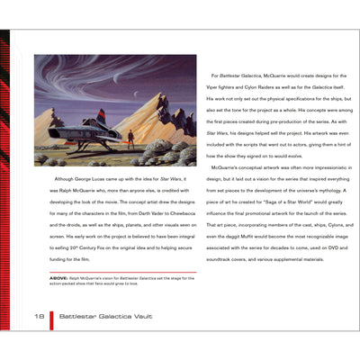 Il serie "Science Fiction Vault - The Making of" (Il caveau della fantascienza - La realizzazione) ti offre esattamente questi spunti. Questo libro di alta qualità racconta la storia della leggendaria serie Battlestar Galactica viene raccontata. Oltre ai testi di base e alle foto della produzione, ogni libro contiene uno o più scomparti contenenti repliche di bozzetti, poster del film o altri materiali di produzione.