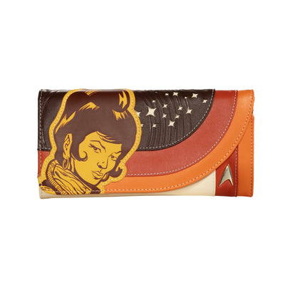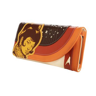 Nichelle Nichols, interprete di Uhura in Star Trek, ha lasciato un'importante eredità sia dentro che fuori la serie. Essendo una delle prime donne di colore a interpretare un personaggio diverso in televisione, la Nichols ha fatto la storia della TV. Non meno impressionante è il suo personaggio di Uhura in Star Trek: è molto passionale, ma anche intelligente, indipendente e assolutamente elegante. Segui le sue orme con questo portafoglio!