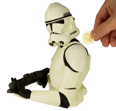 Si potrebbe anche arrivare a dire che la vita di un Clone Trooper non vale nemmeno un centesimo... Fortunatamente, questo non vale per questi Salvadanaio di Star Wars - Clone Trooper. La tua vita vale centinaia di centesimi!