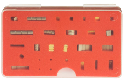 Ogni set è corredato da un elenco dei magneti inclusi, che fornisce anche informazioni sulle dimensioni esatte e sulla rispettiva capacità di carico. Le dimensioni delle scatole di plastica in cui puoi riporre i magneti in tutta sicurezza sono di 12,5 x 8 x 1,8 cm - quindi possono stare nella tasca dei pantaloni :)