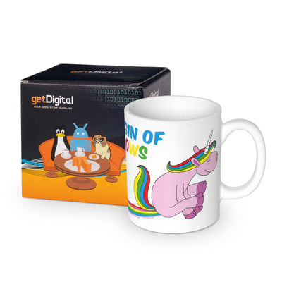 Ok, forse dobbiamo lavorare un po' di più sulla nostra comunicazione in codice. Fino ad allora, il "tazza "L'origine degli arcobaleni ti mostrerà cosa intendiamo. Per farla breve: gli unicorni producono arcobaleni. Purtroppo non con le corna, ma con altre parti del corpo. Sai cosa ti dico? Preferiamo non entrare nei dettagli. Dopo tutto, un'immagine vale più di mille parole...