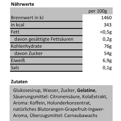 Come tutti i prodotti ad alto contenuto di caffeina, le gommine non sono raccomandate per le donne in gravidanza o per i bambini e bisogna attenersi alle quantità di consumo indicate sulla confezione. Le gomme alla frutta contengono anche gelatina e non sono quindi adatte a vegetariani e vegani.