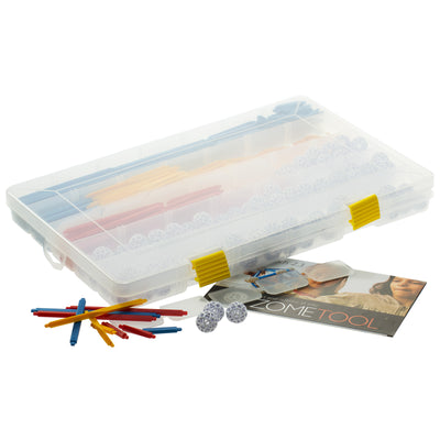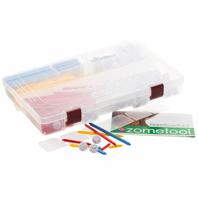 Das Zometool Konstruktionssystem wird zur Nachbildung und Veranschaulichung von Strukturen aus der Chemie, Biologie, und Physik genutzt. Dabei ist es für Wissenschaftler:innen jedes Alters geeignet, auch für Kinder. Herzstück des brillanten Stecksystems ist die Verbindungskugel, die viele Öffnungen in insgesamt drei verschiedenen Formen hat. An diese Basis lassen sich verschieden lange Stäbe setzen.